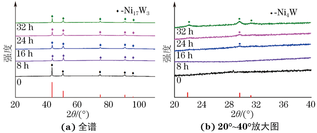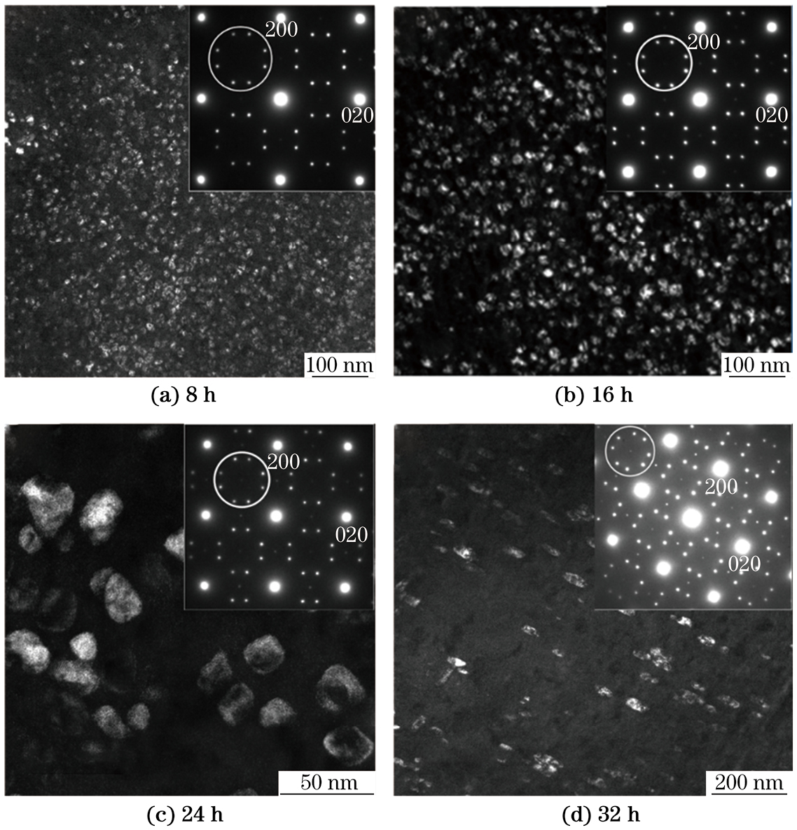 −3 was designed based on the face-centered cubic structure and the strengthening principle of fine dispersion phase. The test alloy was aged at 750 ℃ for different times (0, 8, 16, 24, 32 h). The effects of aging time on the microstructure and tensile properties of the alloy were studied. The results show that after aging, D1