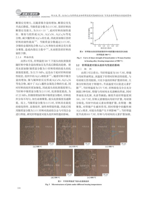 用镍质量分数为2.0%钎料对高硅铝合金与可伐合金 Al 2 Cu增多,对接头性能产生不利影响 [23] ;当钎焊温
