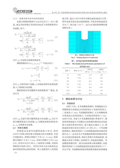 式中: η 为电弧分热源的热效率。 表1 Q370qE钢的热物理性能参数