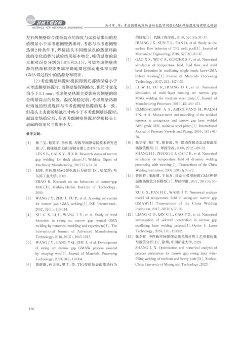 of swing arc narrow gap GMAW process assisted ZHANG L X. Optimization and numerical analysis of