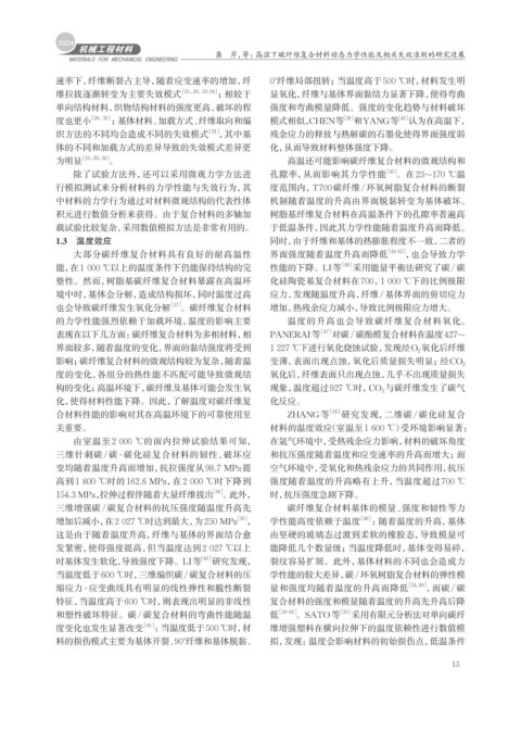 度也更小 [26,35] ;基体材料、加载方式、纤维取向和编 模式相似,CHEN等 [38] 和YANG等 [42] 认为在高温下,