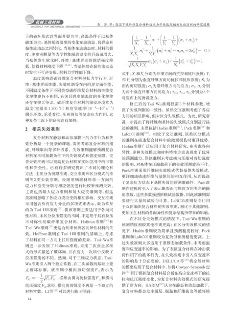 2 相关失效准则 述的准则,主要包括Hashin准则 [57] 、Puck准则 [58] 和