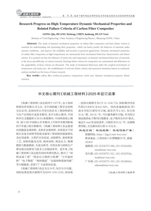 分会会刊,是国内外公开发行的有关工程材料研究 或本刊发行部均可订阅,邮发代号 4-221,发行价