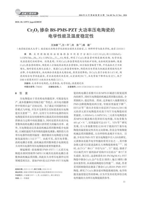Cr O 掺杂 BS-PMS-PZT 大功率压电陶瓷的