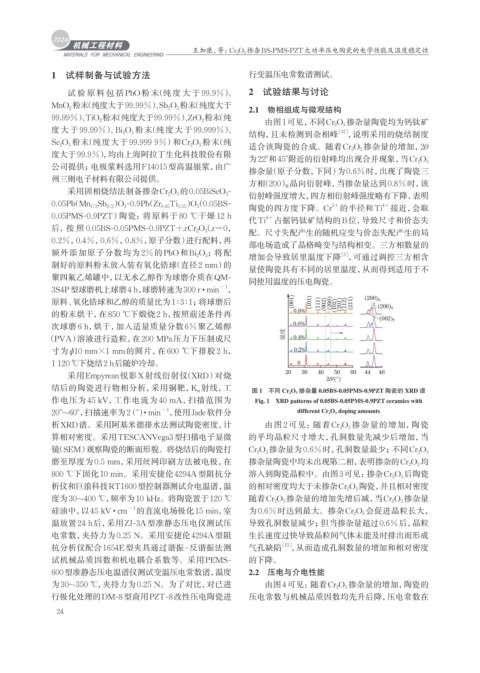 Sc 2 O 3 粉末(纯度大于 99.999 9%)和Cr 2 O 3 粉末(纯 适合该陶瓷的合成。随着Cr 2 O 3 掺杂量的增加,2θ