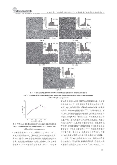 Cr 2 O 3 掺杂量为0.4%时达到最大,为390 pC · N −1 , 好压电性能。由此可见,掺杂原子分数在0.8%以下