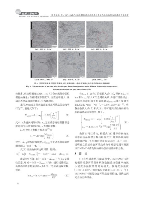 张肖佩佩,等: 18CrNiMo7-6齿轮钢的动态再结晶和亚动态再结晶行为及其动力学模型