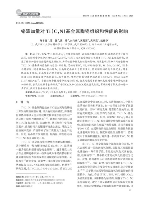 关键词: 铬添加;Ti(C,N)基金属陶瓷;显微组织;力学性能;抗氧化性能