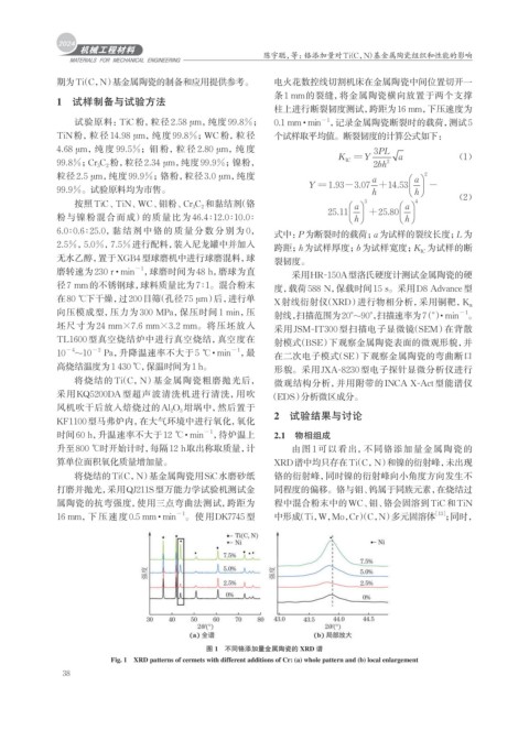 16 mm,下压速度 0.5 mm · min − 1 。使用DK7745 型 中形成(Ti,W,Mo,Cr)(C,N)多元固溶体 [13] ;同时,