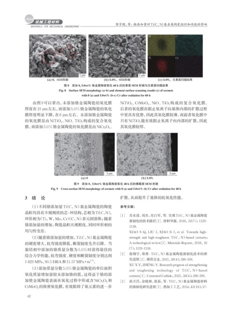 加使金属陶瓷表面在氧化过程中形成含NiCr 2 O 4 和 [3] 孙万昌,佘晓林,张磊,等. Ti(C,N)基金属陶瓷材料