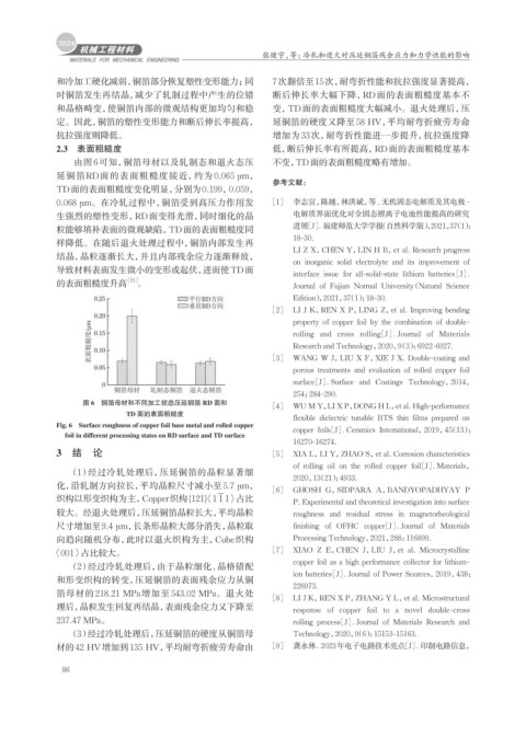 和晶格畸变,使铜箔内部的微观结构更加均匀和稳 变,TD面的表面粗糙度大幅减小。退火处理后,压