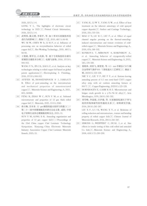 copper foil[J]. Materials,2022,15(6):2249. 组织织构和耐弯折性能的关系[J]. 材料研究学报,