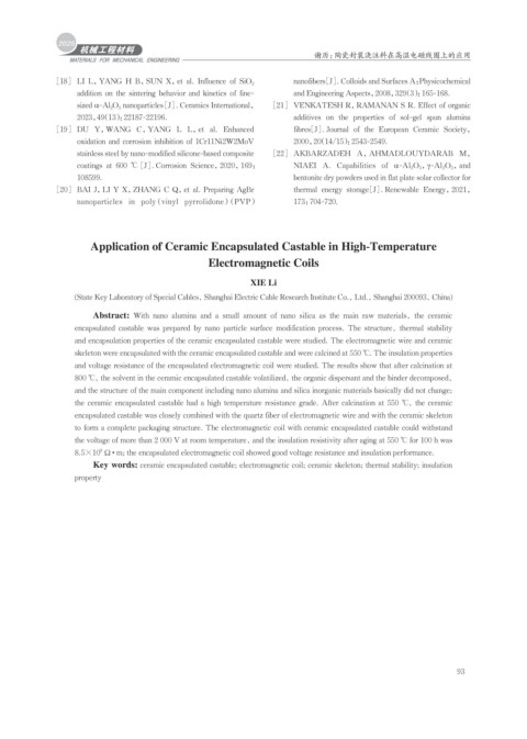 and encapsulation properties of the ceramic encapsulated castable were studied. The electromagnetic wire and ceramic