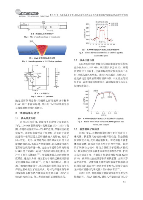 围,焊缝的硬度在220~250 HV范围,焊缝硬度的起 2.3 疲劳裂纹扩展路径