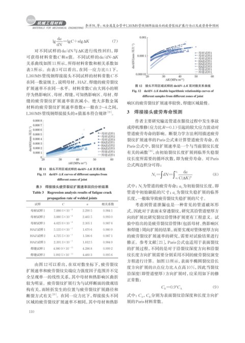 母材试样3 4.625 9×10 −8 2.305 1 0.987 6 验中给出的是疲劳裂纹沿管体(包括母材、热影响区