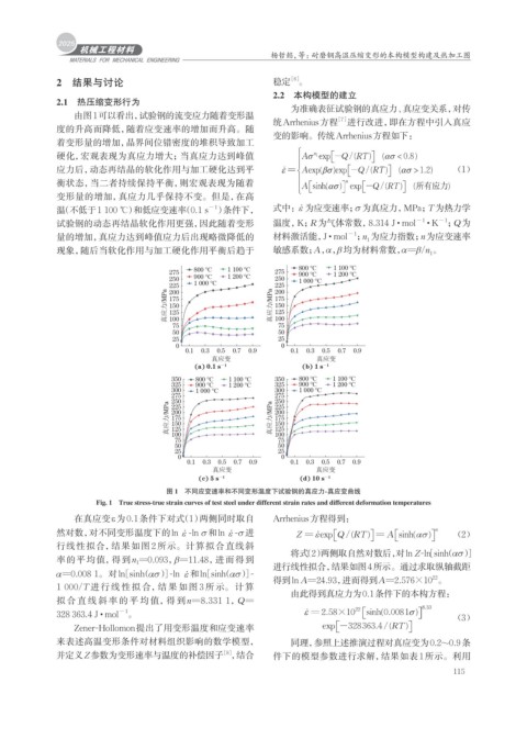并定义Z参数为变形速率与温度的补偿因子 ,结合 件下的模型参数进行求解,结果如表 1所示。利用