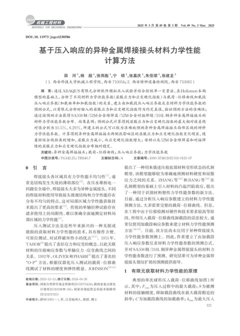 材料的压痕响应参数与单轴应力-应变曲线之间的 并对SA508钢/316L钢异种金属焊接接头的材料力