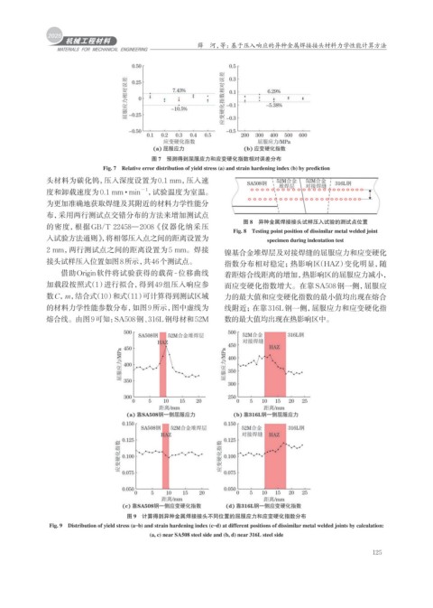 加载段按照式(1) 进行拟合,得到49组压入响应参 而应变硬化指数增大。在靠SA508钢一侧,屈服应