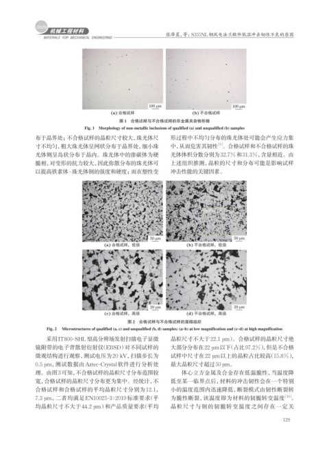 宽,合格试样的晶粒尺寸分布更为集中。经统计,不 低至某一临界点后,材料的冲击韧性会在一个特别