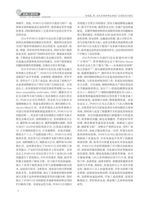 司进行的世界级钢铁制造商排名中,POSCO公司 用材,同时深入论述了新能源汽车轻量化用材的发
