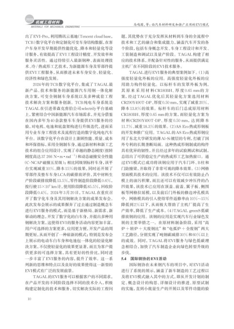 上展示的电动车白车身和电池包一体化的轻量化解 的成效。同时,TAGAL将EVI服务与绿色低碳理