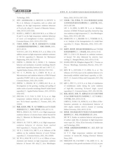 合金高温抗氧化性能的影响[J]. 机械工程材料,2019, 495.
