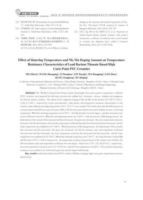 Key words: lead barium titanate based PTC ceramic; Nb-Mn co-doping; high Curie point; temperature resistance