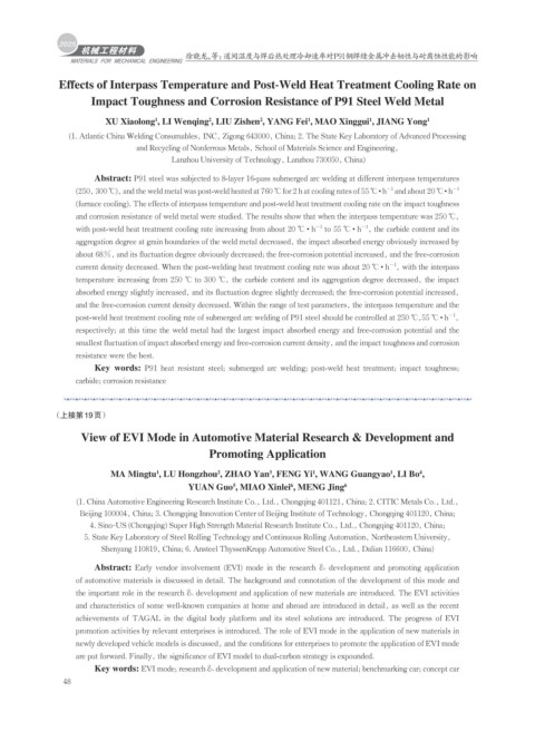 Key words: P91 heat resistant steel; submerged arc welding; post-weld heat treatment; impact toughness;