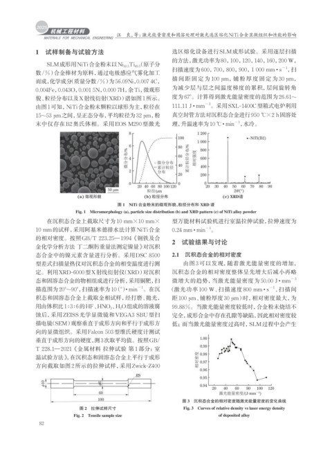 由图1可知,NiTi合金粉末颗粒以球形为主,粒径在 111.11 J · mm −3 。采用SXL-1400C型箱式电炉利用