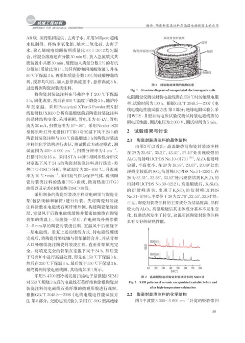采用S-4700型冷场发射扫描电子显微镜(SEM) 图 2 高温煅烧前后陶瓷封装浇注料的 XRD 谱