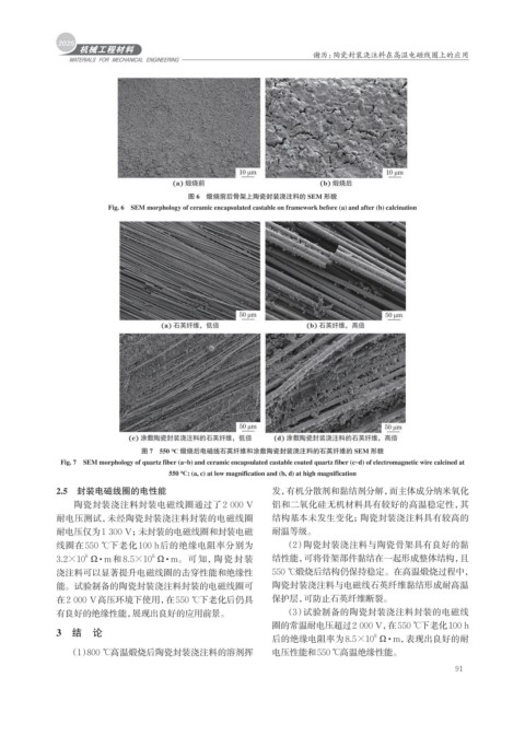 能。试验制备的陶瓷封装浇注料封装的电磁线圈可 陶瓷封装浇注料与电磁线石英纤维黏结形成耐高温