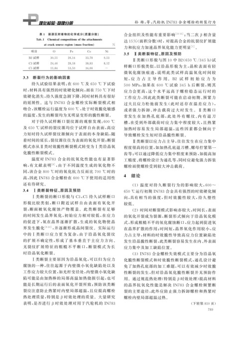 能是长期运行后的表面氧化开裂所致; 预防该类断 的晶界抗氧化性能是解决 IN783 合金螺栓频繁断
