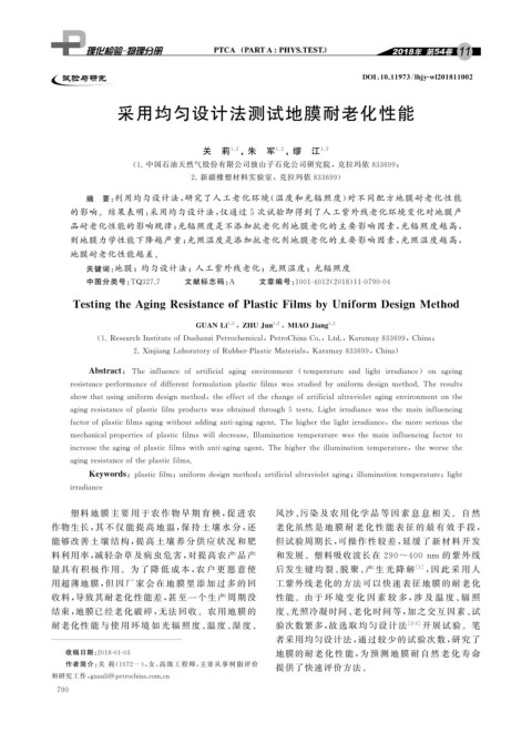 关键词: 地膜;均匀设计法;人工紫外线老化;光照温度;光辐照度