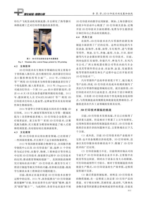 司成功打印出一个深 500 μ m 的小型肝脏组织, 存 其在汽车零部件制造领域的应用.就目前阶段, 3D