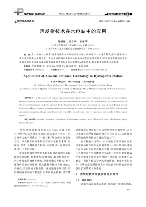 Ke y words : acousticemissiontechnolo gy ; h y dro p owerstation ; steelbifurcated p i p e ; distributin g p i p e ;