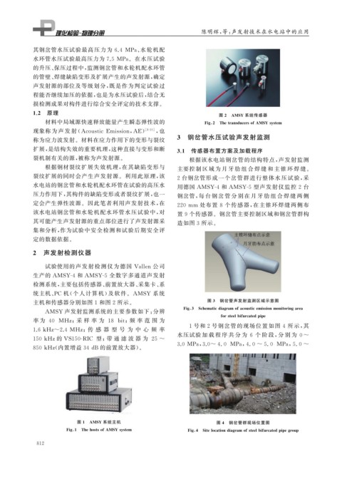 水电站的钢岔管和水轮机配水环管在试验的高压水 用德国 AMSYG4 和 AMSYG5 型声发射仪监控 2 台