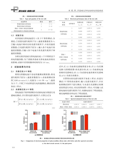 Fi g 敭1 Com p arisonofelectrical p ro p ertiesof p ol y cr y stallinesiliconsolarcellsbeforeandafters p ectralcorrection