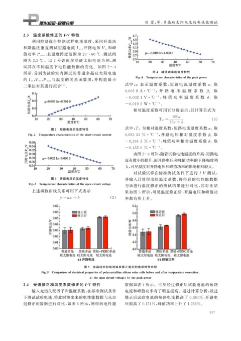 Fi g 敭5 Com p arisonofelectrical p ro p ertiesof p ol y cr y stallinesiliconsolarcellsbeforeandaftertem p eraturecorrection