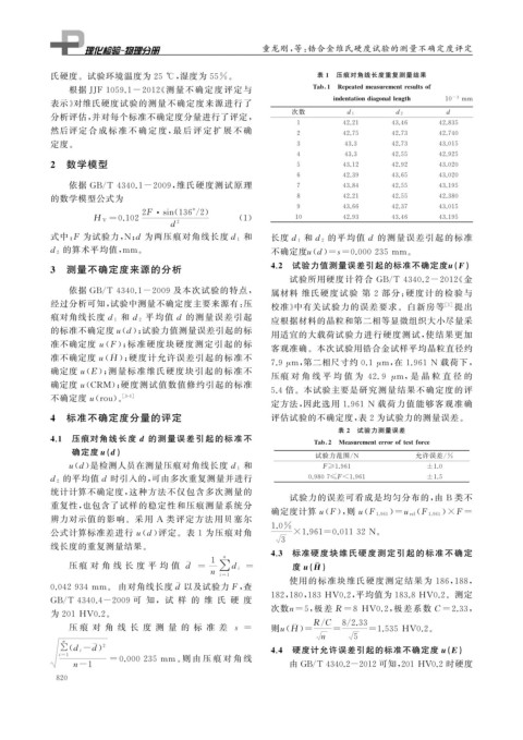 4.1 压痕对角线长度 d 的测量误差引起的标准不 Tab敭2 Measurementerroroftestforce