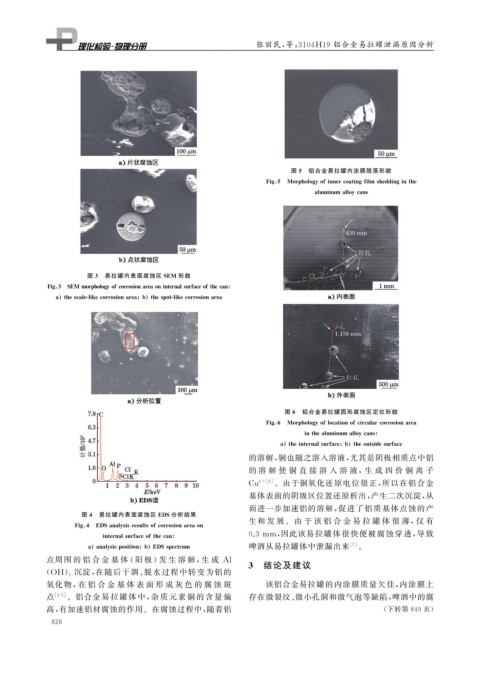 点 [ 4G5 ] .铝合金易拉罐体 中, 杂 质 元 素 铜 的 含 量 偏 存在微裂纹、 微小孔洞和微气泡等缺陷, 啤酒中的腐